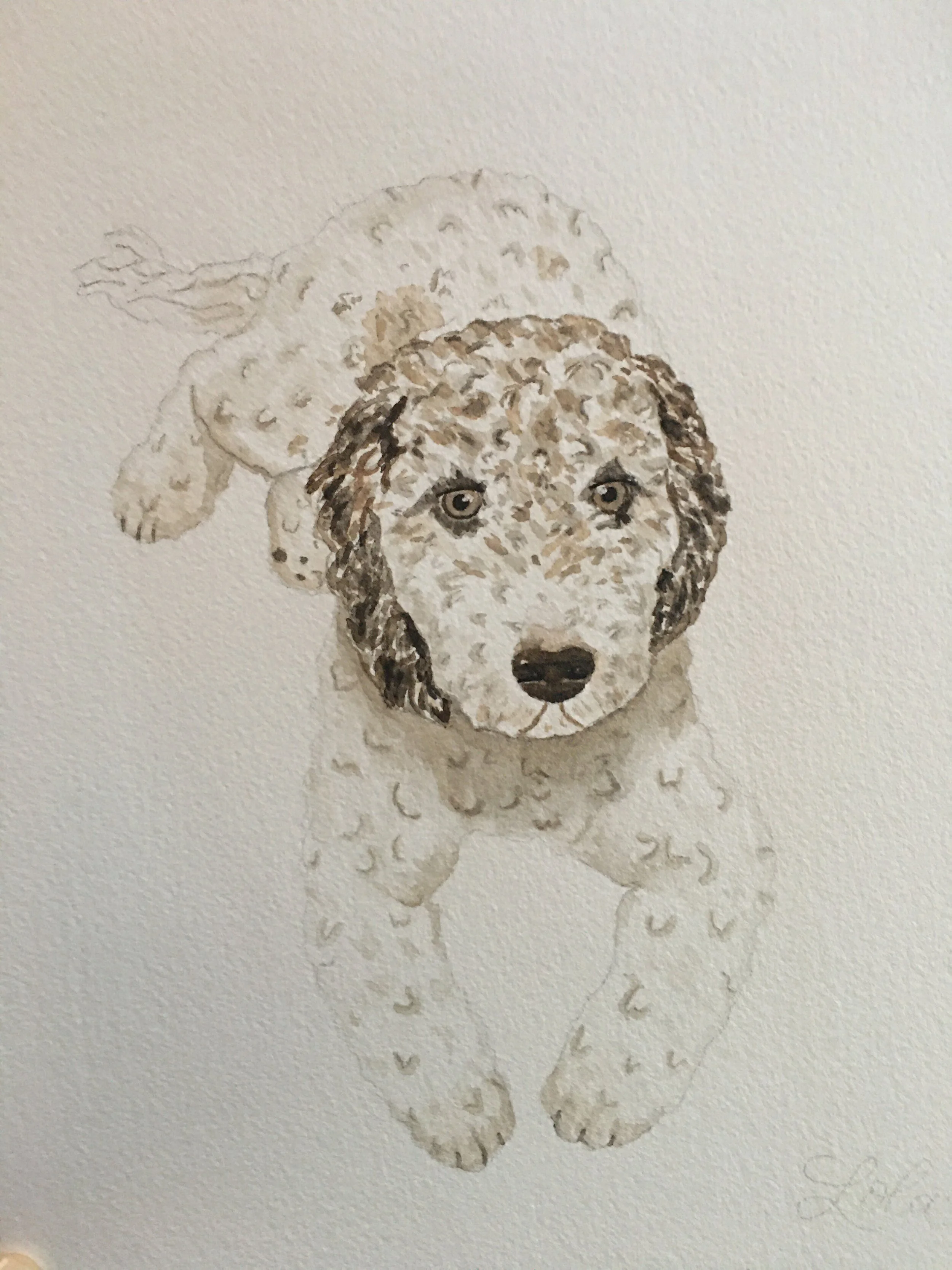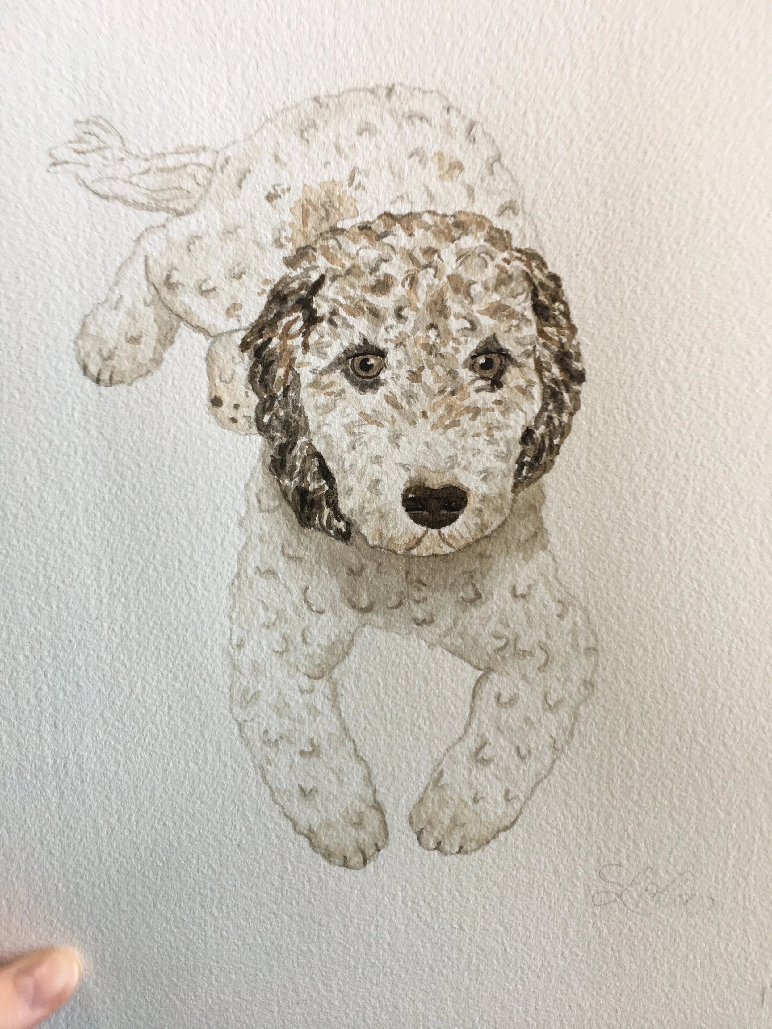 Here is a peek into my process for creating a custom pet portrait using watercolor.